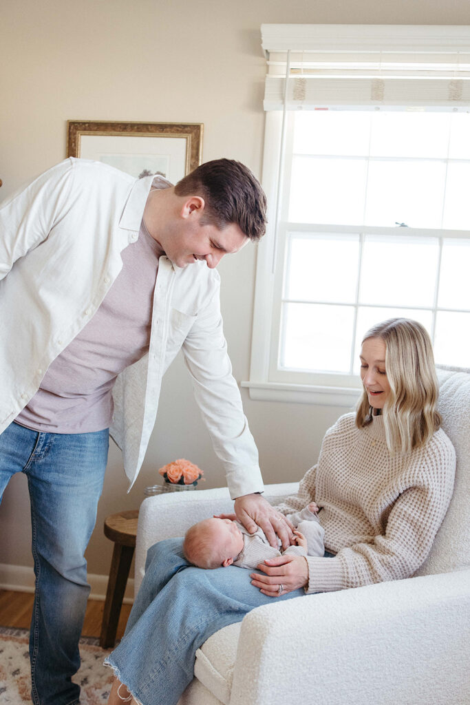 2. Ease and Convenience. Let’s face it anything that is less stressful is a reason to book an in home newborn session alone! Adjusting to life with a newborn isn’t exactly easy. Trying to pack up everything those first times with a newborn baby is a reeaaal struggle. Throw in a sibling or even a midwest winter-yikes! With an in-home lifestyle session, we have easy access to anything and everything we all need: pacifiers, change of clothes (let’s face it babies love to pee on you in front of the camera) and even snacks. You can comfort your baby in the same way you are used to within the session. We listen to baby the whole way through, including breaks for feeding.