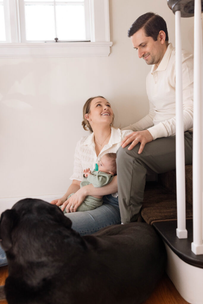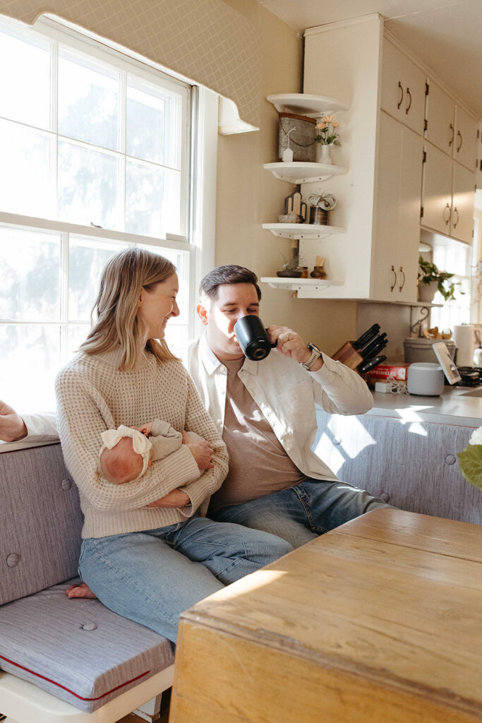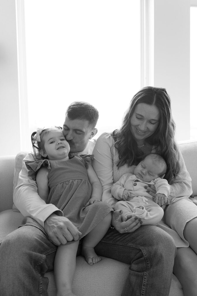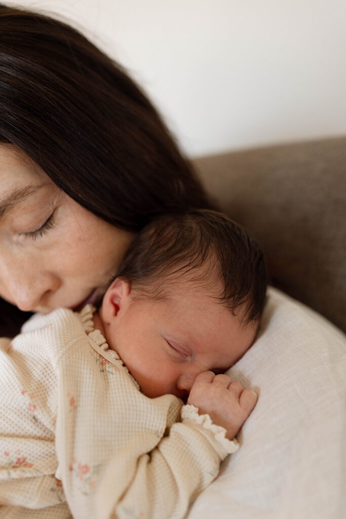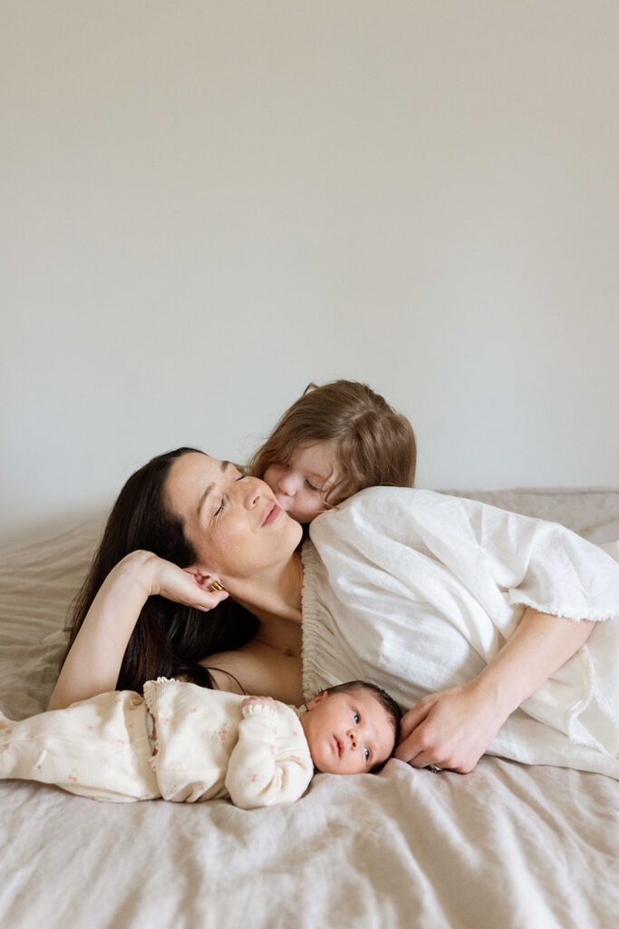 5. Storytelling + Connection.ย Save the best for last!! One of the most important reasons to book an in-home newborn session is that your home is part of your family’s story. Lifestyle sessions lend themselves to lots of variety in the stories they tell. Your session will look different than your neighbors. Pets, siblings, all are welcome. Details are so important to remember-whether thats little feet, the way your babe perfectly curls up on your chest, or maybe even a family heirloom (I’ve seen some beautiful bassinets, blankets, etc). Connection above all else. There are different positions and prompts that I will give you to allow your family’s natural connection to shine through. I could take pictures of mama’s soaking up that newborn smell ALL DAY. You can enjoy your simple morning routine with your family. For example, you can put on some music, enjoy some breakfast or coffee. The more comfortable you and your family feel the more the photos will be authentic and truly look like your family ๐