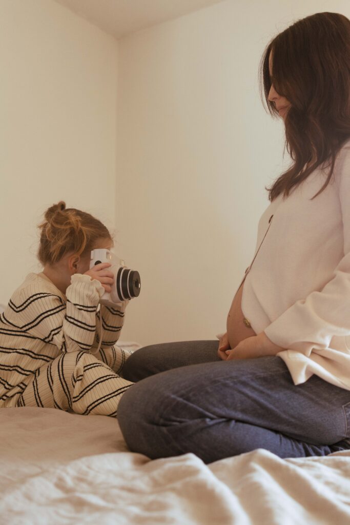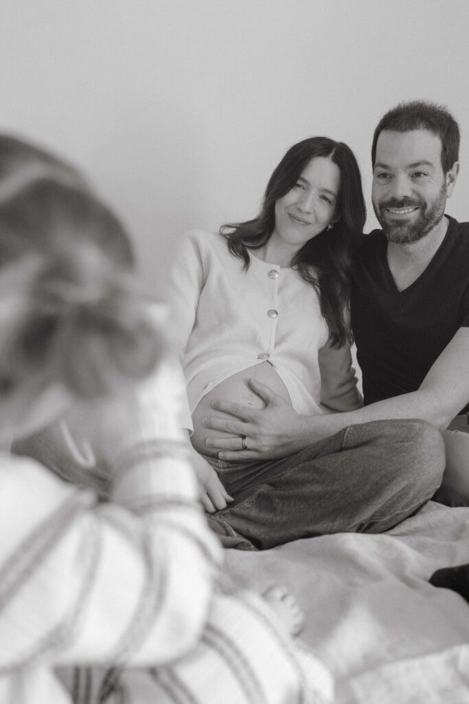 You will also want to decide if your partner and/or family are joining. I definitely recommend this-it makes it more interactive and adds variety + more emotion to your gallery. If they are, we can create a wardrobe vision board to coordinate the whole crew. Before your session, you will also want to prep your family. The more they know, the better. This includes explaining that sessions will involve a lot of interaction and less posed “cheesing” at the camera. If little babe has siblings coming along, I recommend turning your session into an “outing” (which may include going out to dinner, ice cream, etc) so it turns into something extra special and a great memory. You can also think outside of the box for your maternity photos. For example, if we are scheduling during summer we could do a fun backyard sprinkler.